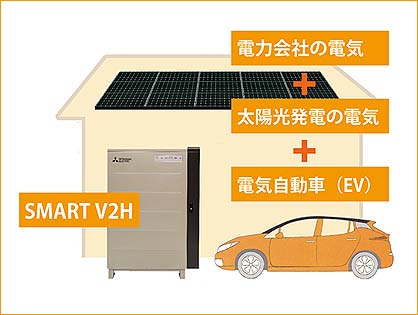 電気自動車(EV)と太陽光発電システム(PV)と電力会社(系統)の電気を混ぜて使用できる「SMART VH2」の採用して、新しい発電、給電、蓄電の仕組みがこれからの家族の暮らしに必要な安心と快適をお届けします。